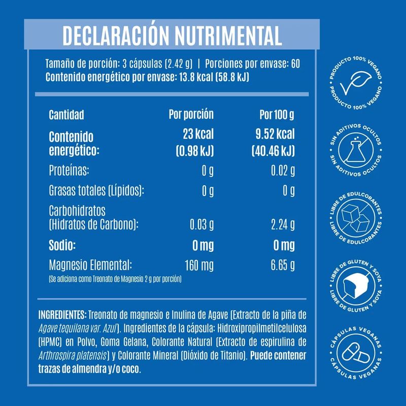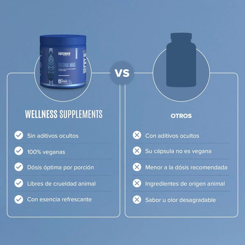 Suplemento Alimenticio Treona Mag a Base de Treonato de Magnesio e Inulina de Agave Birdman 180 Cápsulas